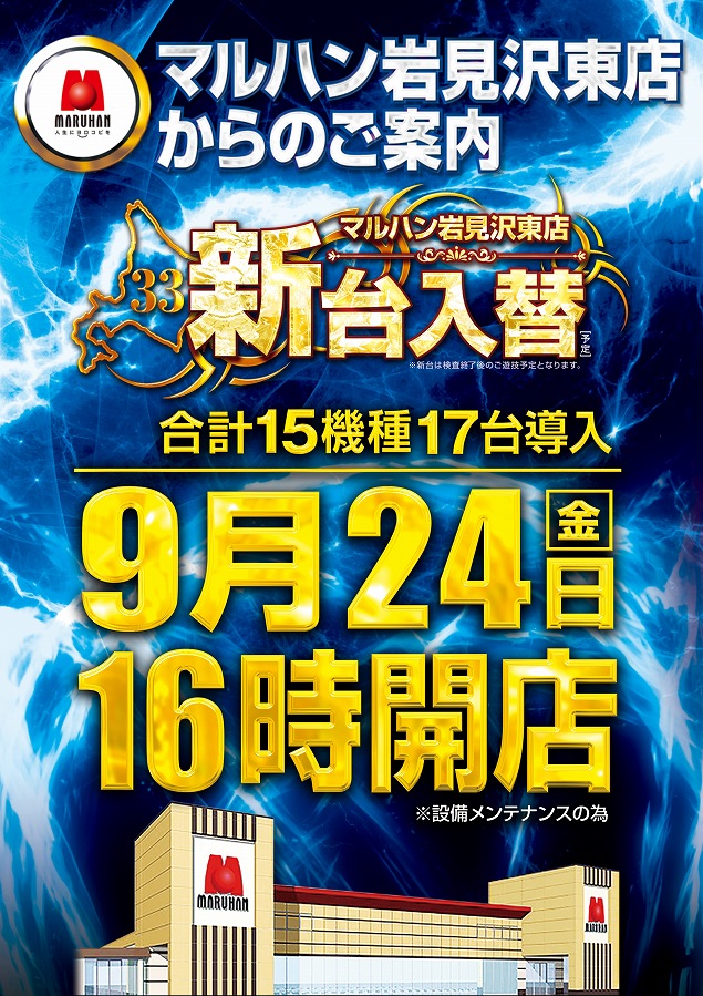 9月24日(金)16時開店&新台入替 ※設備メンテナンスの為