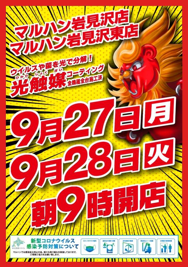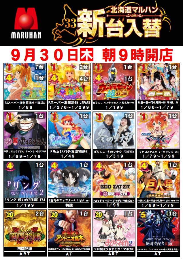9月30日(木)朝9時開店 新台入替!
