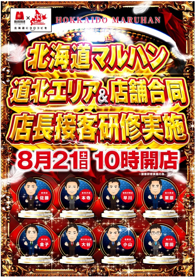 8月21日 [土] 10時開店!! ※道北エリア店長接客研修