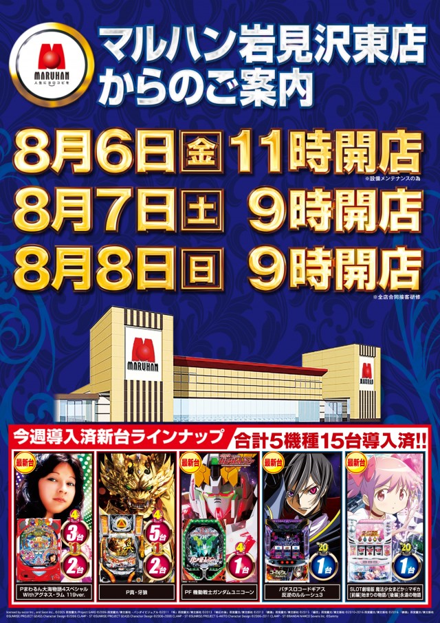 8月7日【岩見沢マルハン両店】朝9時開店!