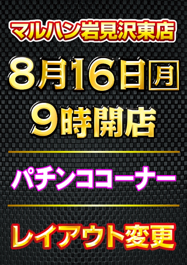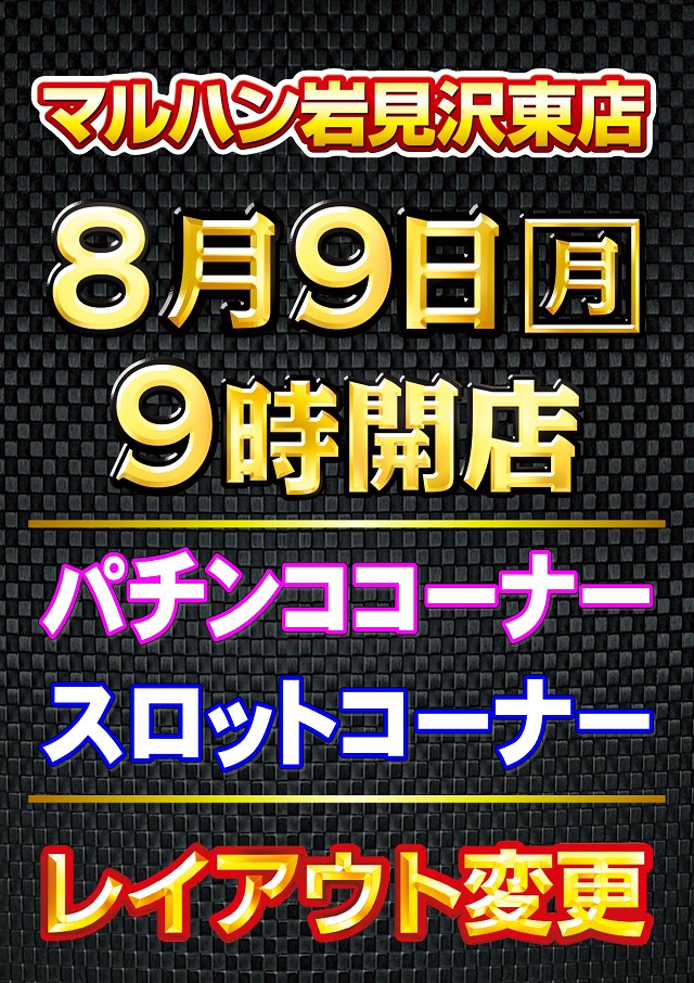 8月9日(月)朝9時開店 パチンコ・スロットレイアウト変更