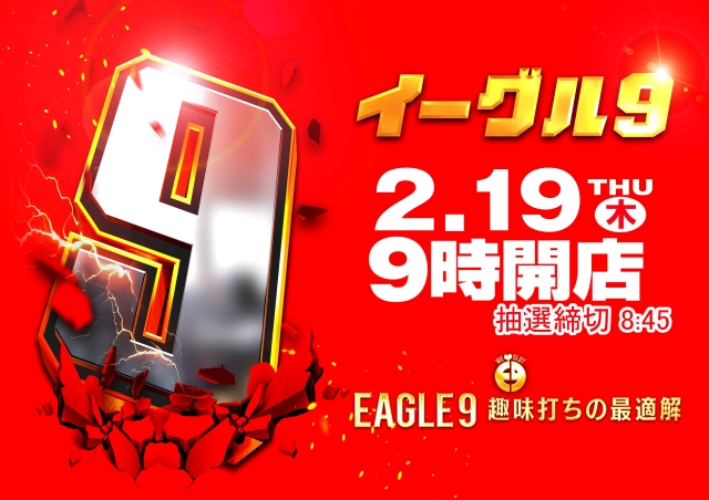 【イーグル9】2月9日9時開店!抽選は8:45開始!