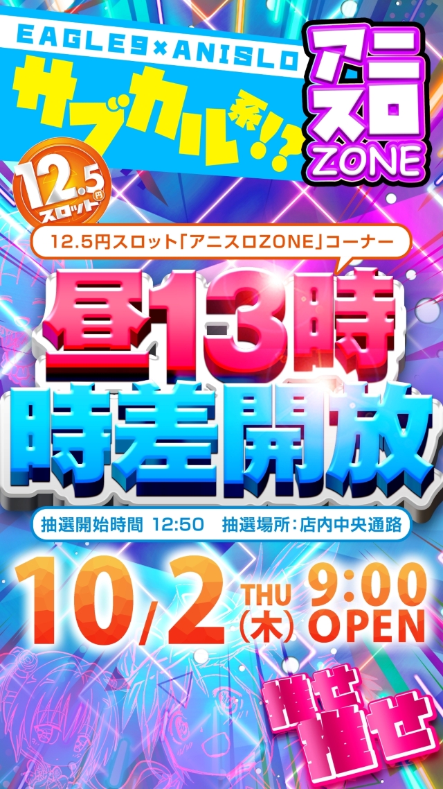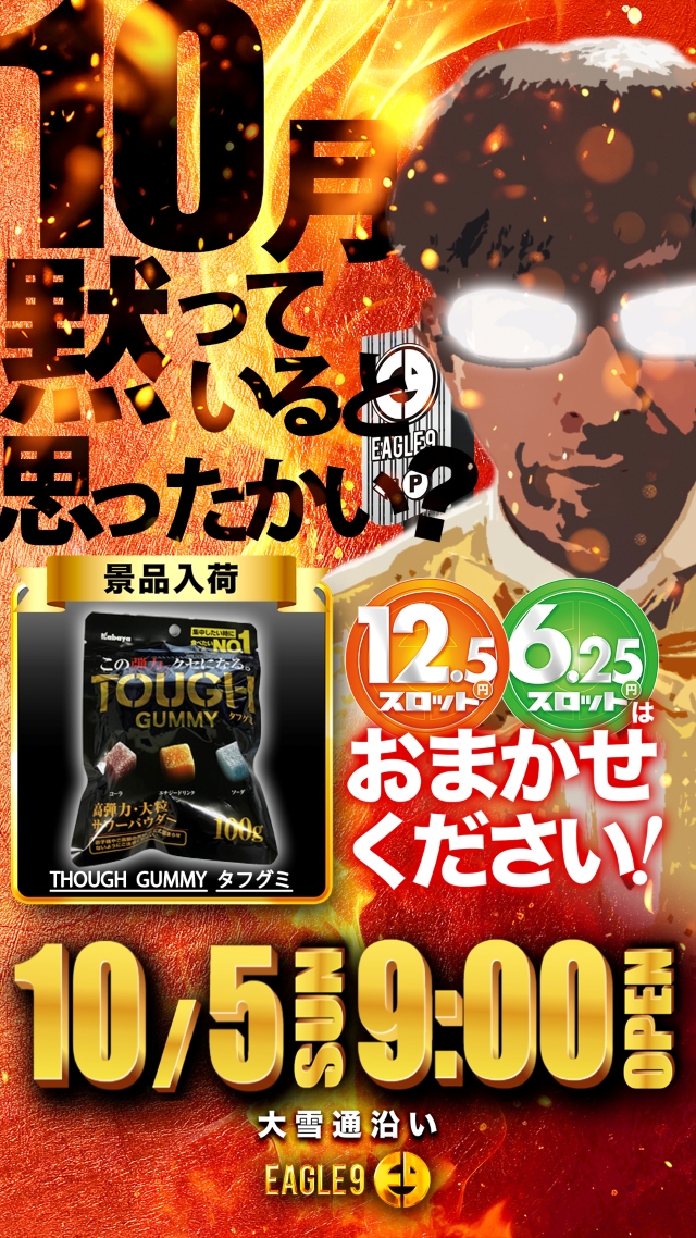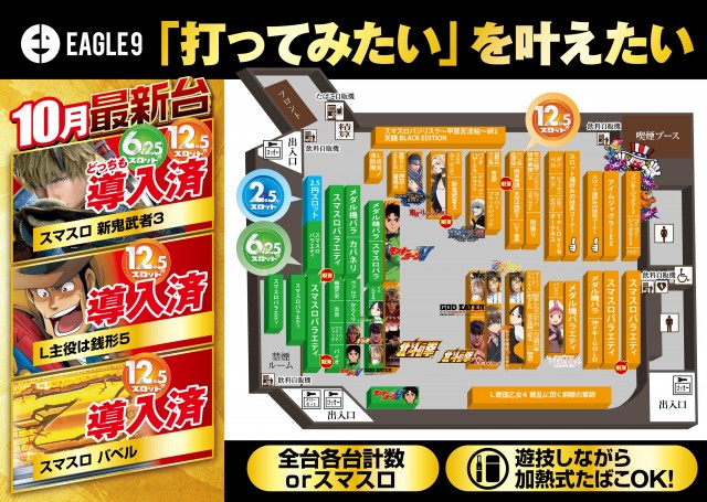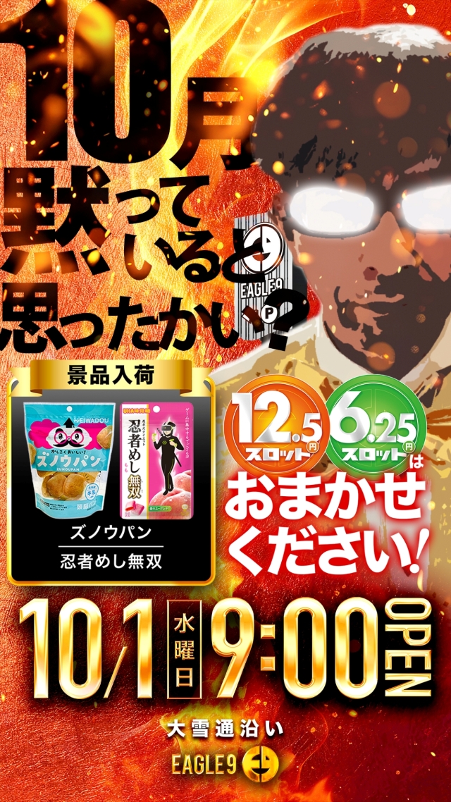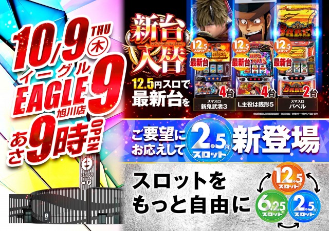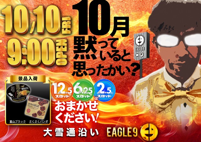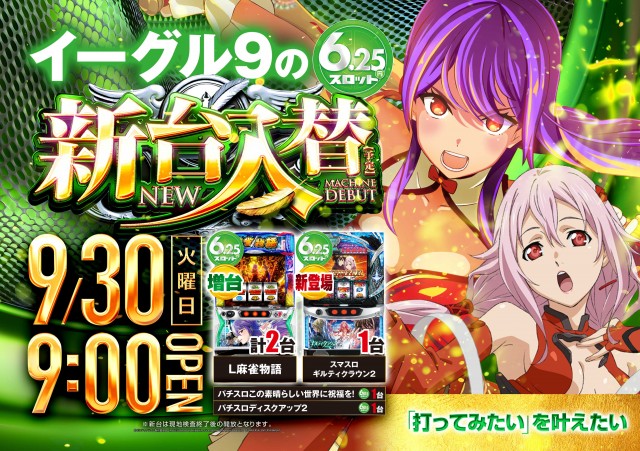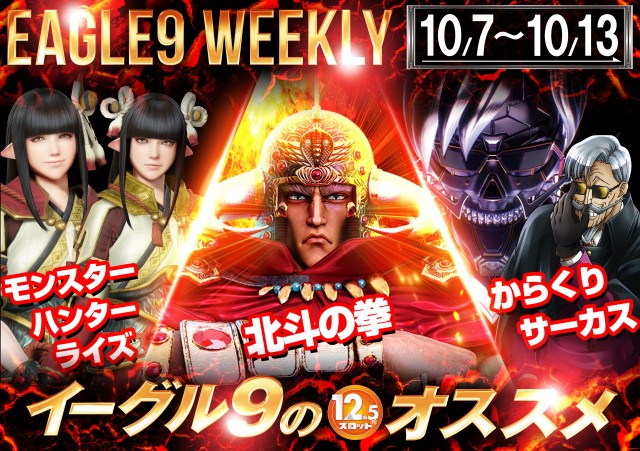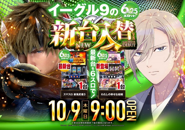 【イーグル9】10月9日!新台入替&2.5スロ登場!