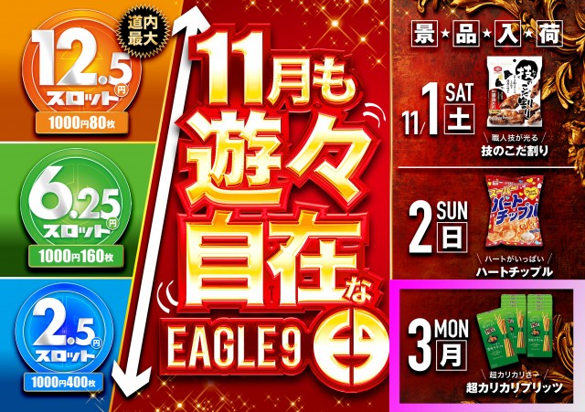 【イーグル9】11/3も景品入荷します!【遊々自在♪】