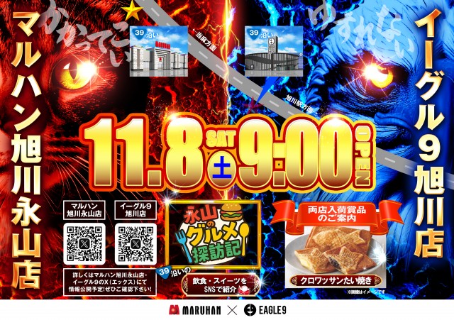 【イーグル9×マルハン旭川永山店】11月8日9時開店🌟