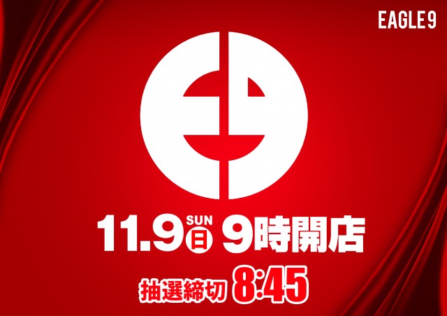 【イーグル9】11月9日!朝9時開店!抽選は8:45です!