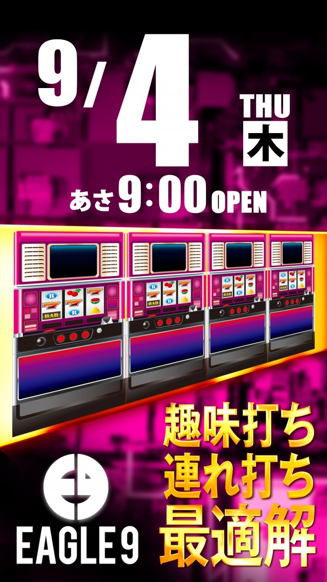 9月4日(月)あさ9時OPEN💥💥💥💥