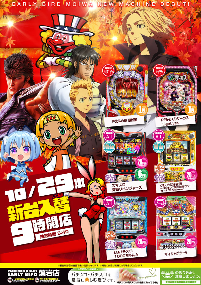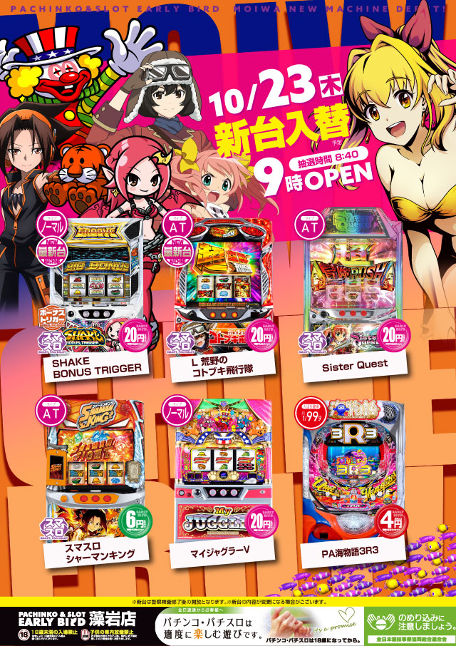 新アーリーバード藻岩店 本日新台入替 午前11時開店
