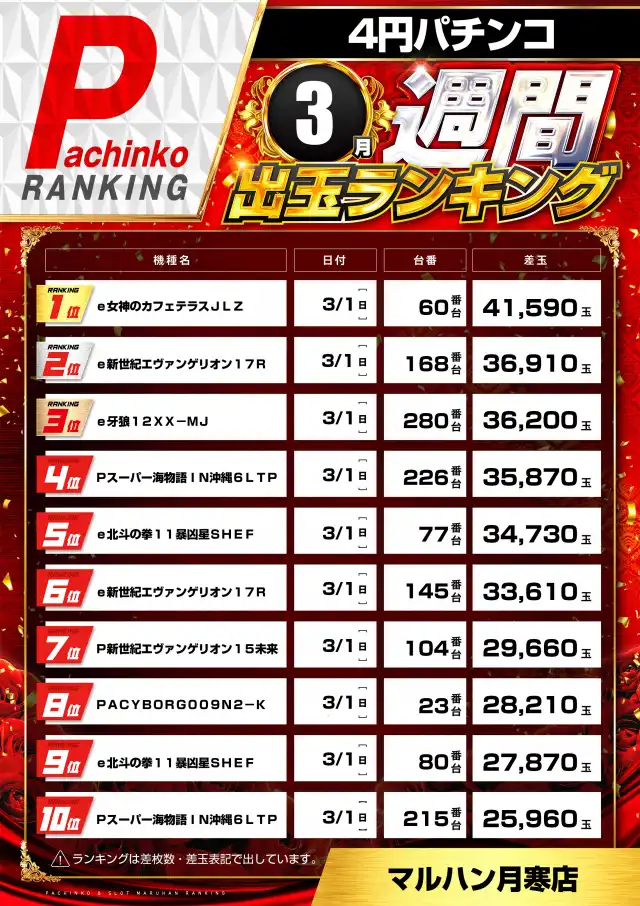 マルハン月寒店の機種情報