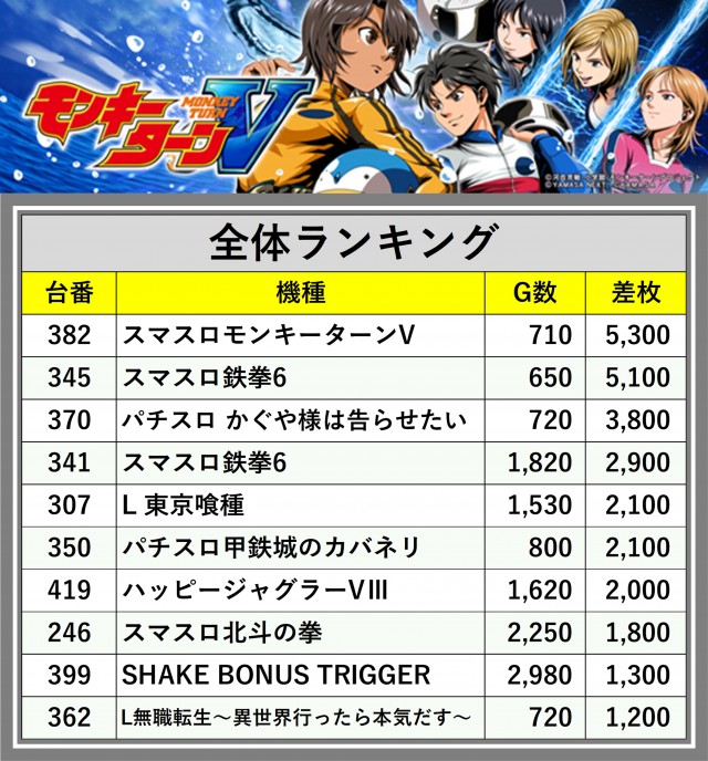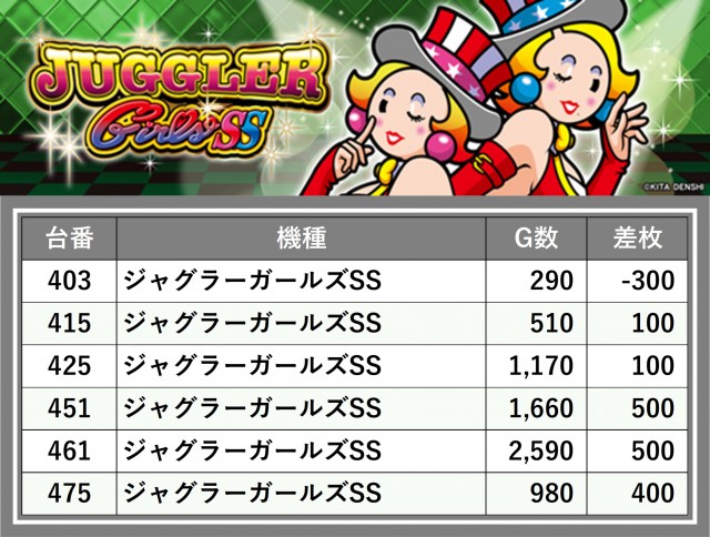 厳選された取材対象機種をはじめ、その他スロット全体から好記録が飛び出した!プレイヤーが楽しんだ1日を下記データにて振り返ってみて欲しい。