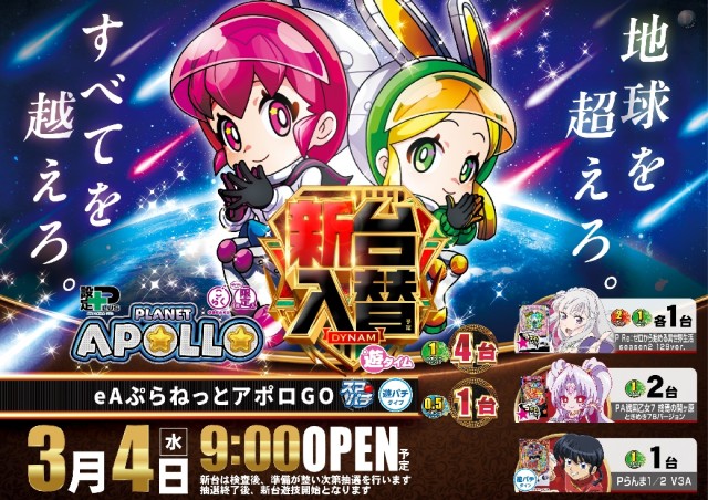 3月4日(水)新台入替(予定)