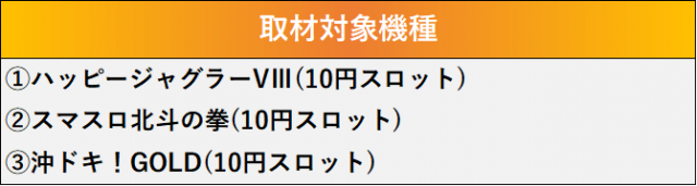 厳選された取材対象機種をはじめ、その他スロット全体から好記録が飛び出した!プレイヤーが楽しんだ1日を下記データにて振り返ってみて欲しい。