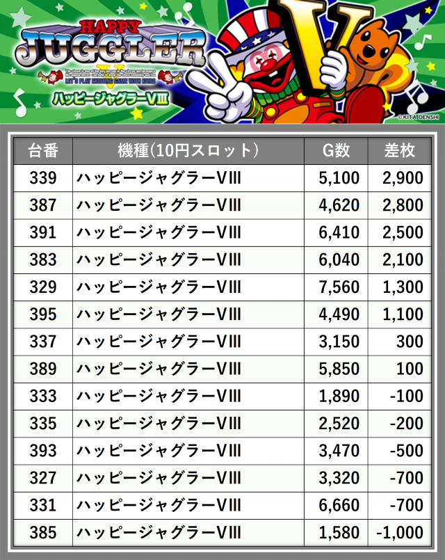厳選された取材対象機種をはじめ、その他スロット全体から好記録が飛び出した!プレイヤーが楽しんだ1日を下記データにて振り返ってみて欲しい。