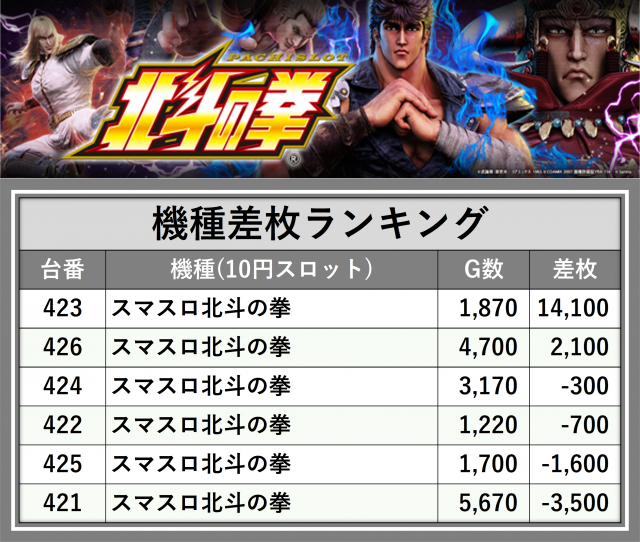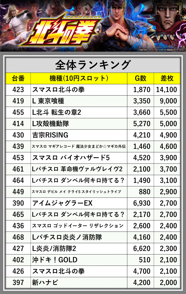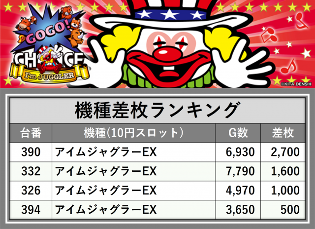 厳選された取材対象機種をはじめ、その他スロット全体から好記録が飛び出した!プレイヤーが楽しんだ1日を下記データにて振り返ってみて欲しい。