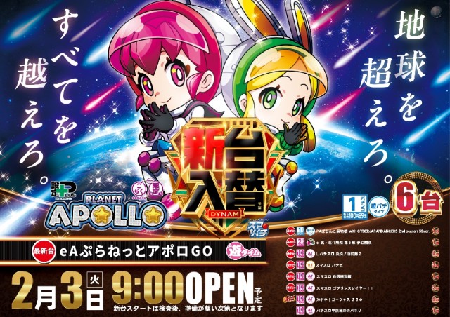 2月3日(火)新台入替(予定)