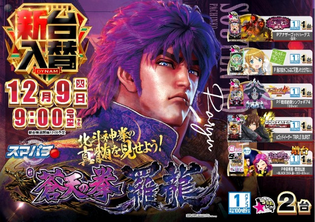 12月9日(火)新台入替(予定)