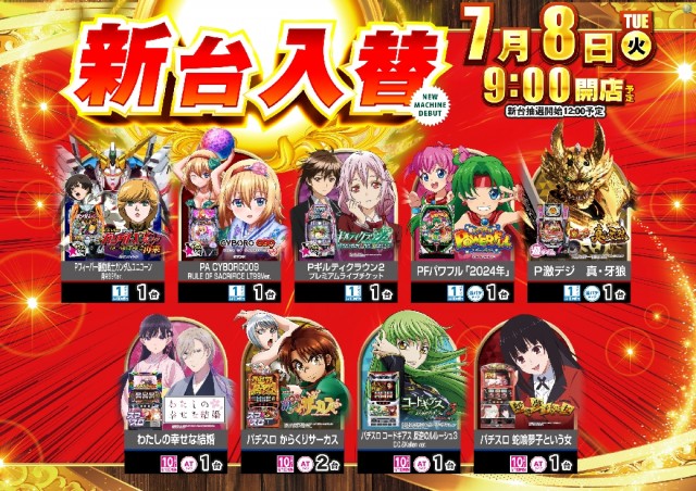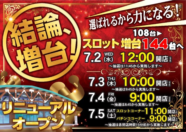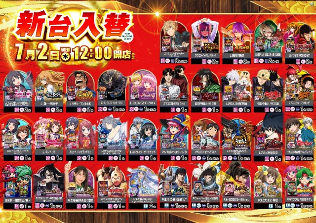 7月2日(水)リニューアルオープン&新台入替(予定)