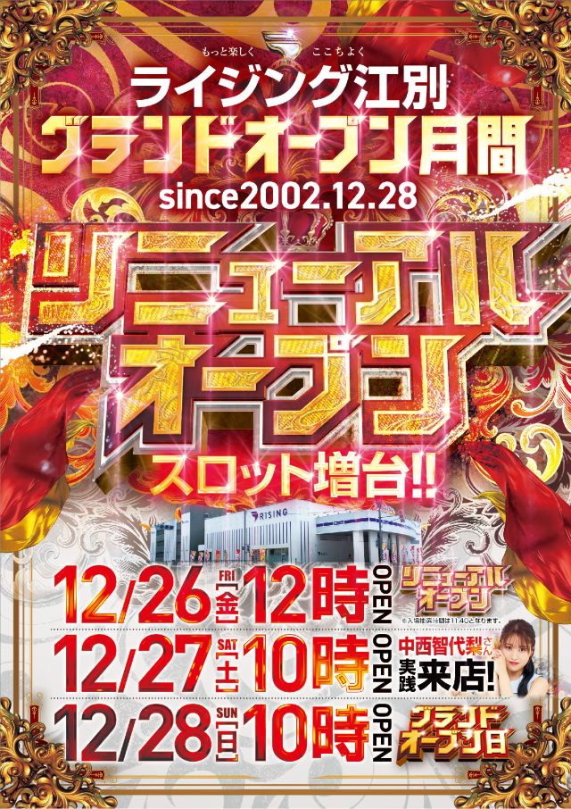 12/26(金)ライジング江別12時リニューアルオープン❗
