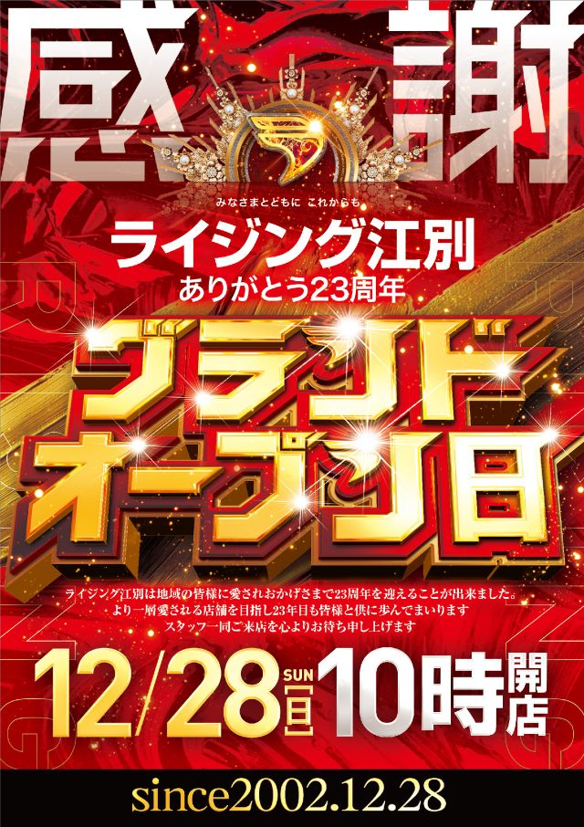 12/28ライジング江別グランドオープン日‼10時OP‼
