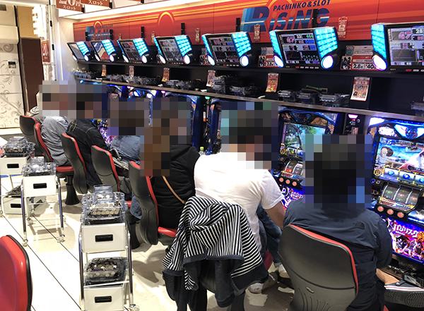 龍の存在を確かめるべくホール内に潜入すると、パチンコとパチスロの両方が盛況。いたるところが活気づいており、ホール全体が明るい雰囲気に包まれていた。