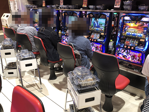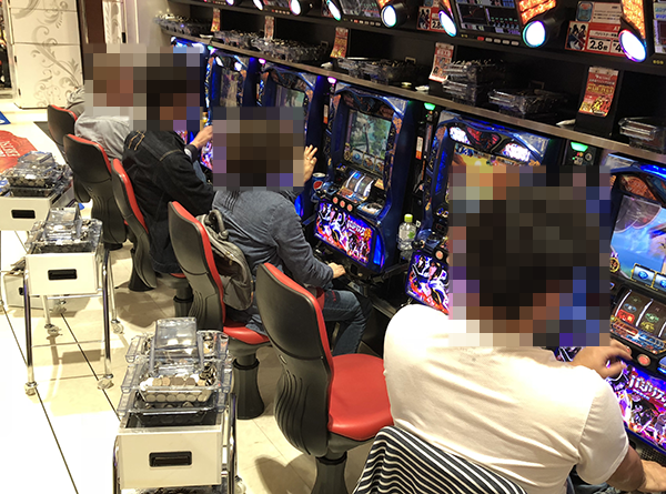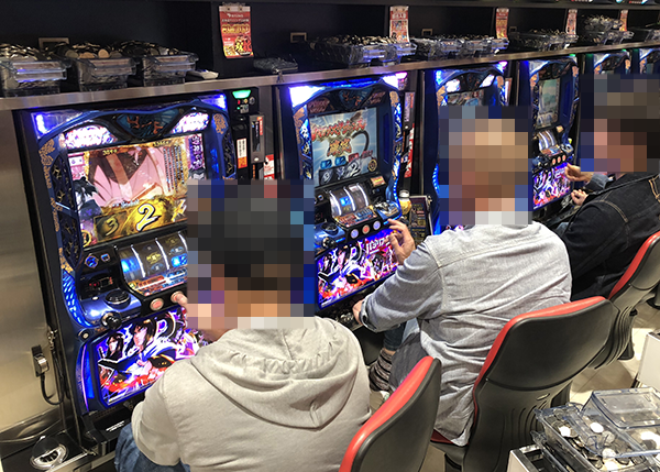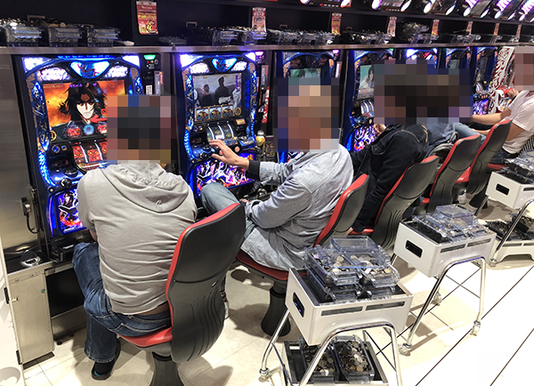 設置されている7台すべてが稼働していることにくわえて、7名中5名が持ち玉で遊技を楽しんでいた。