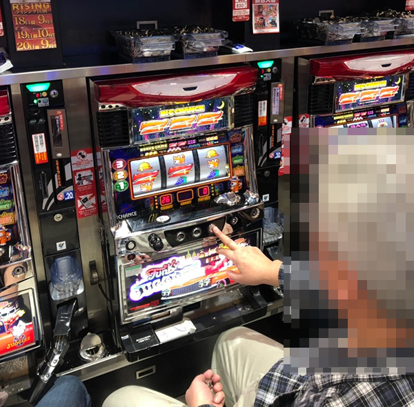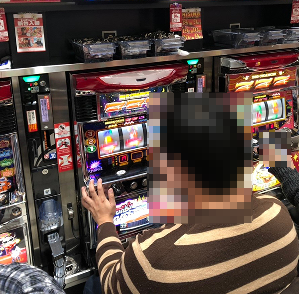 レバーを叩いてストップボタンを押すといったシンプルな行動が軽やか。輝くような笑顔で遊技をおこなっていたことからも、満足度の高さが伝わってきた。