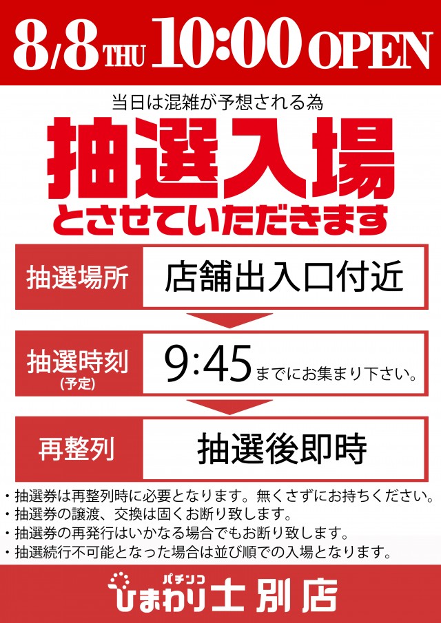 【21周年】8月8日(木)10時開店‼【抽選時刻9:45】