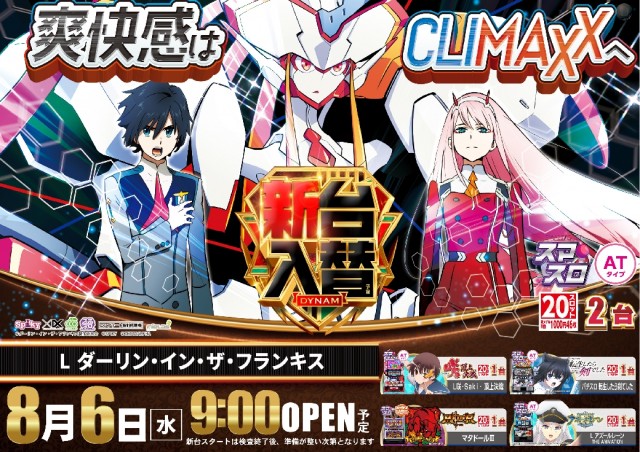 8月6日(水)新台入替(予定)