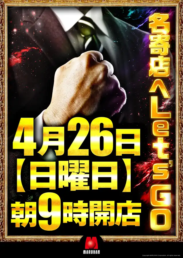 マルハン全店一斉 27日(火)28日(水)朝9:00開店