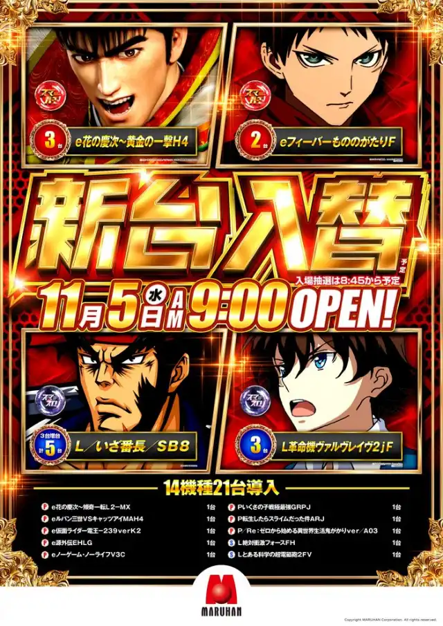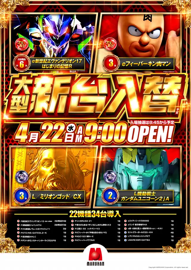 マルハン全店一斉 7日(木)8日(金)朝9:00開店