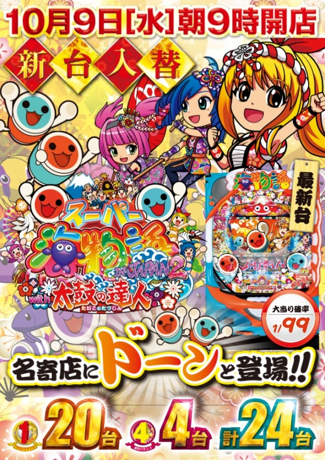 10月9日[水]新台入替!朝9時開店!
