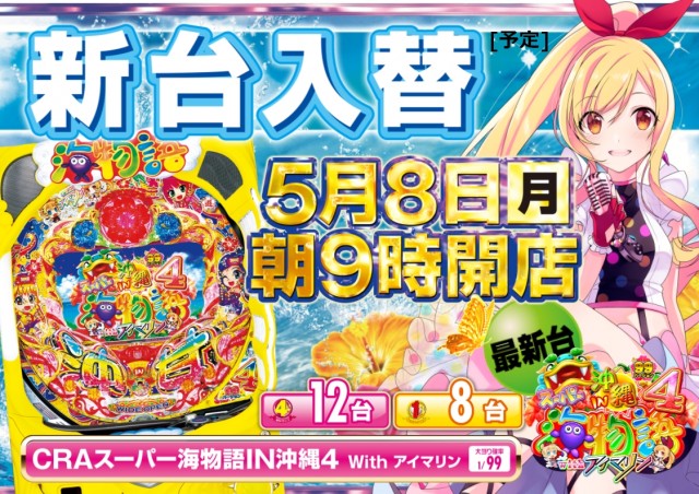 5月8日(月)★新台入替★(予定)朝9時開店!