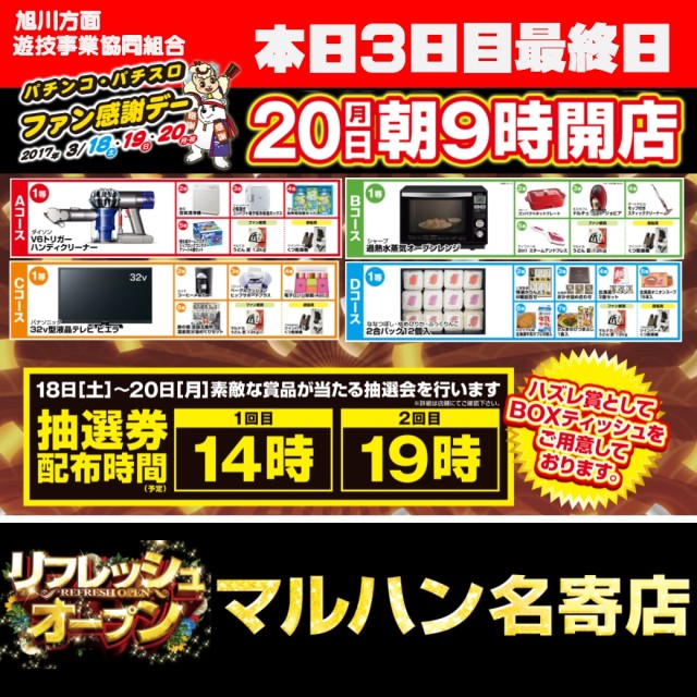 ファン感謝デー最終日! 抽選券配布時間は14時と19時です!