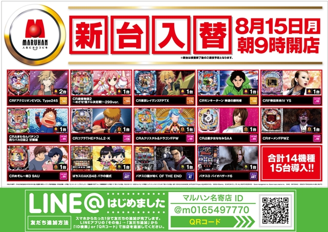 本日★新台入替★あさ9時開店!14機種34台導入予定!