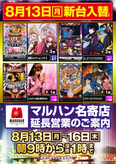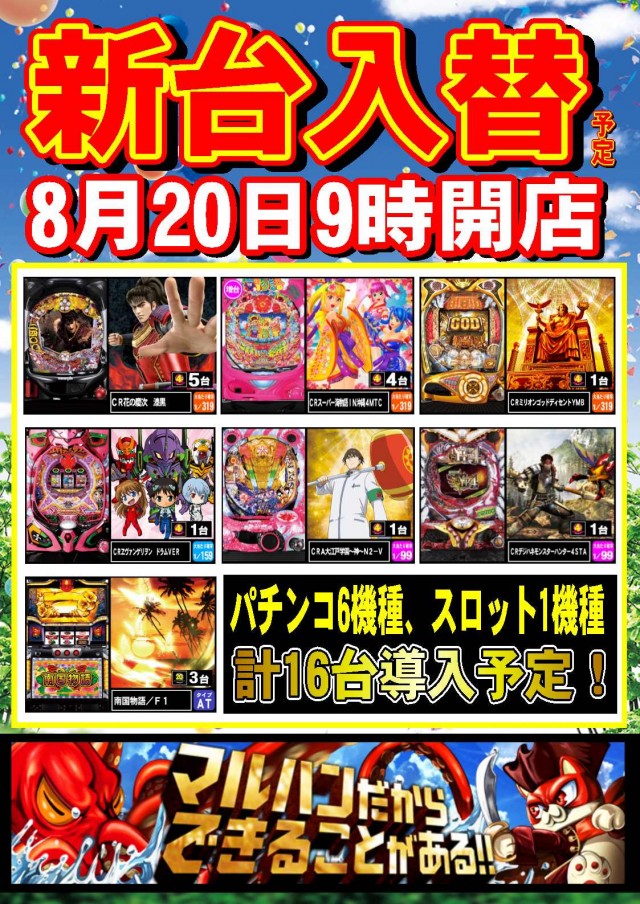 【名寄店】8.20新台入替予定!