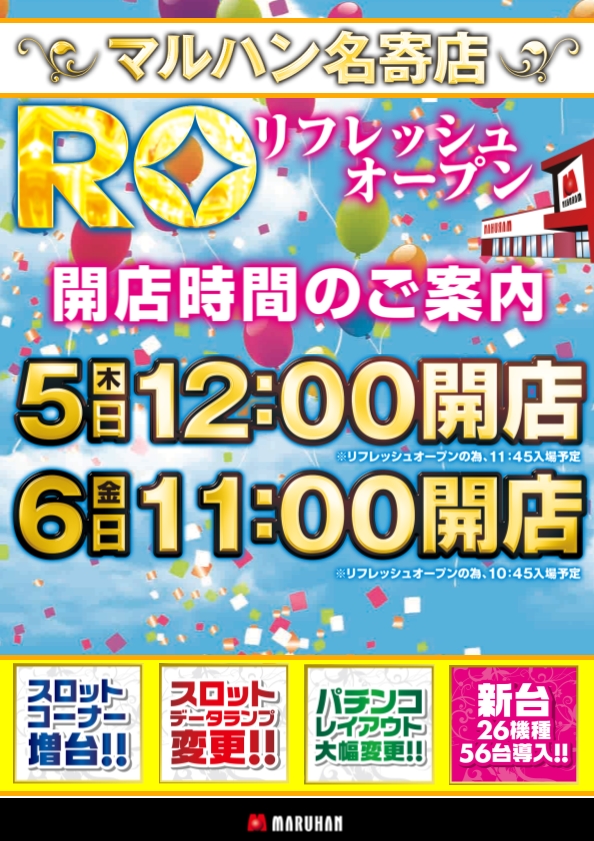 【名寄店】新台入替予定!朝9時開店!!