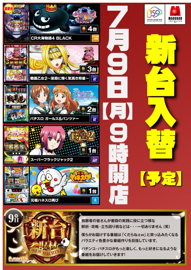7/9(月)★新台入替★(予定)9時開店!