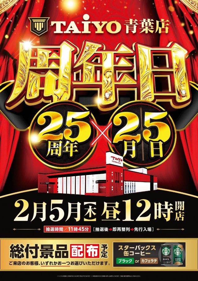 💘パーラー太陽青葉店💞2月5日12時開店❗25周年日❗