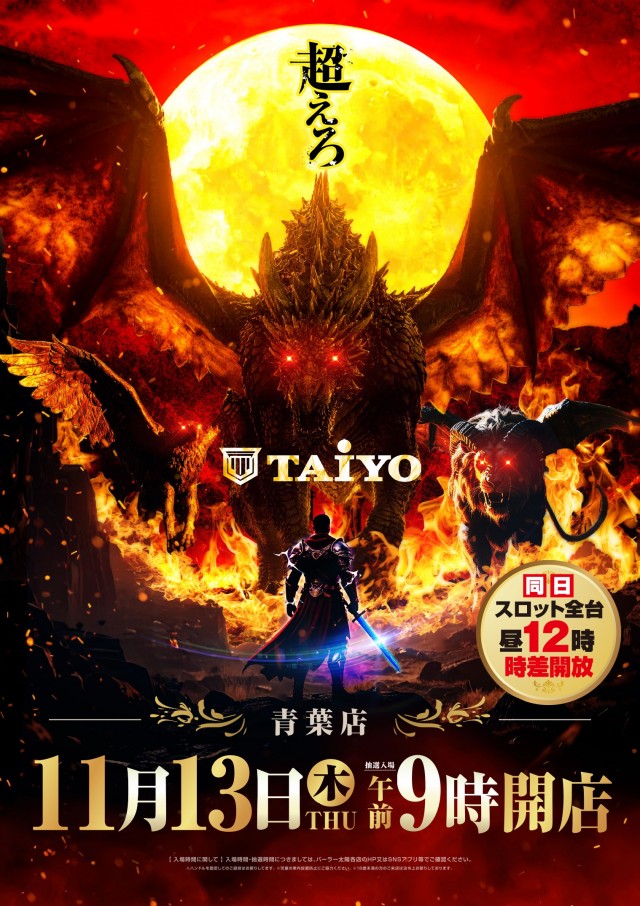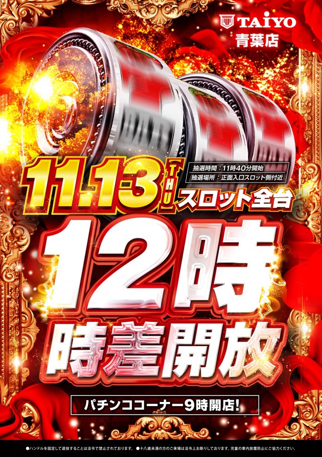 💖11月3日9時開店💘😎パーラー太陽青葉店へ🌞