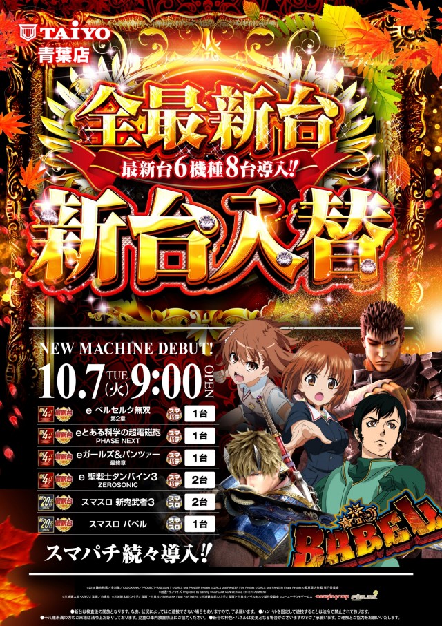 💖9月23日9時開店💘😎パーラー太陽青葉店へ🌞