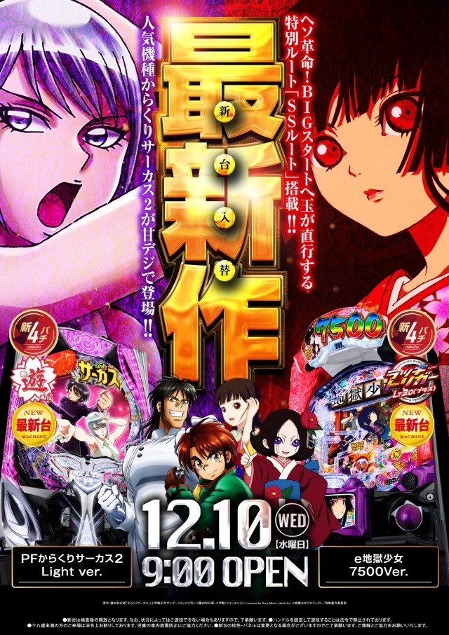 💘本日12/10は新台入替🎈9時オープン❗