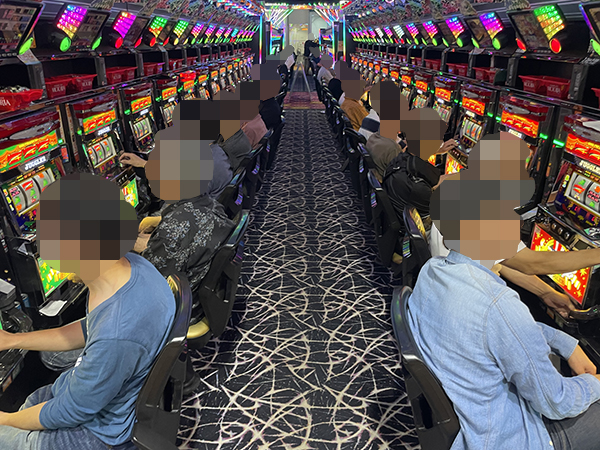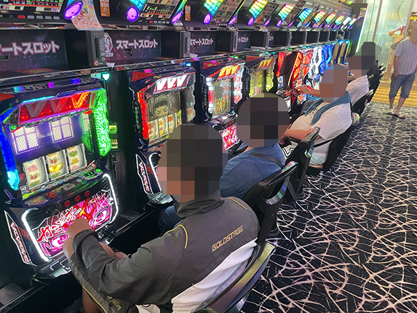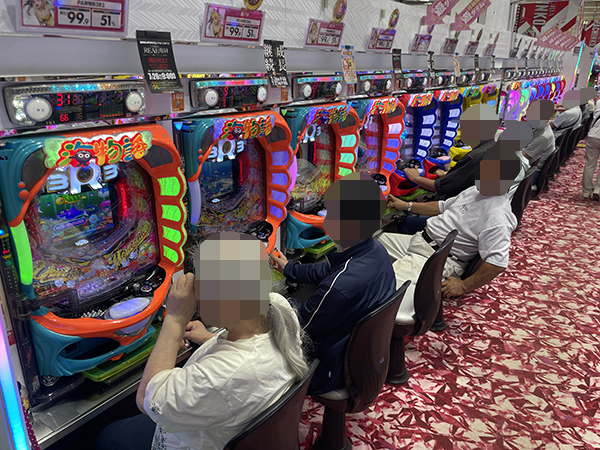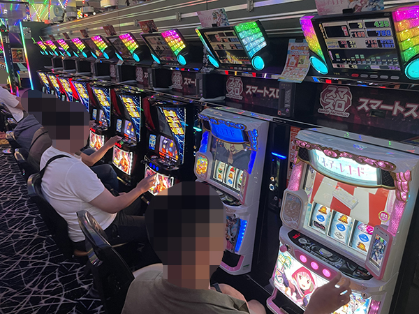 取材時は既に多くのプレイヤーが集結し、パチンコ・パチスロを問わずにぎやかな状況となっていた。