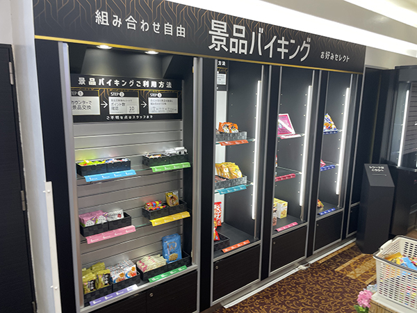 景品コーナーには多彩な銘柄のスナック類が用意されており、お菓子好きにはたまらない、充実の品揃えとなっている。