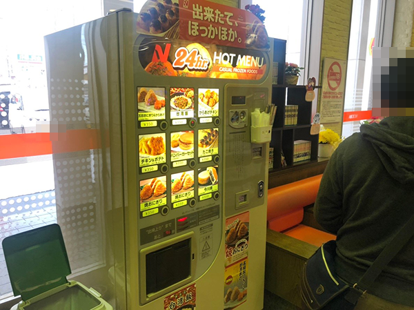 ホール内にはホットスナックの自動販売機が設置されている。昼食時や小腹がすいた時などに利用してみてもよいだろう。