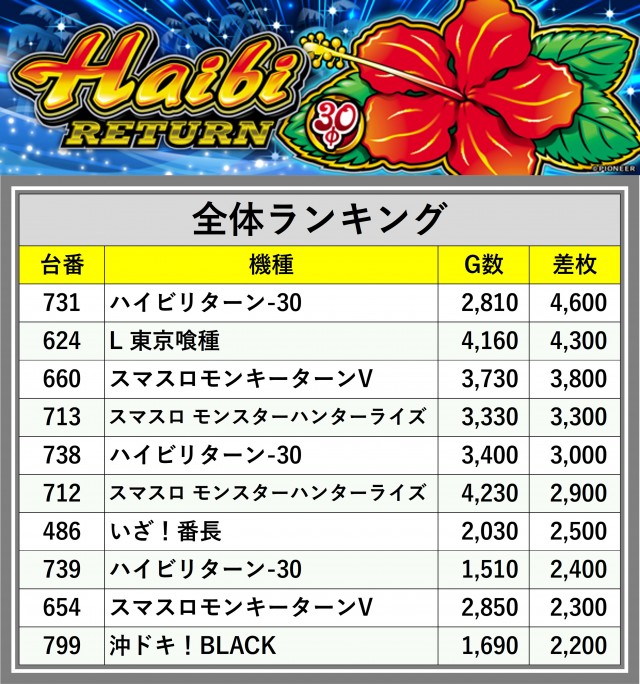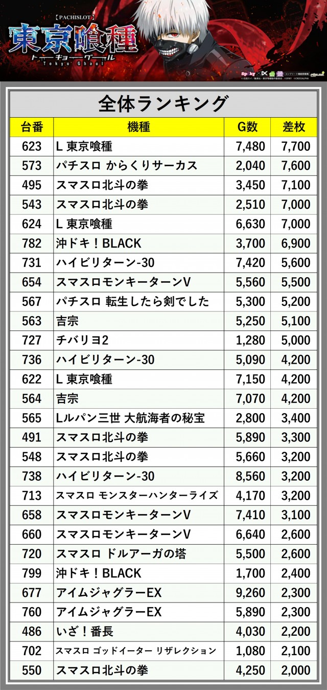 ※差枚数順に掲載しています
