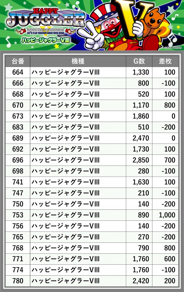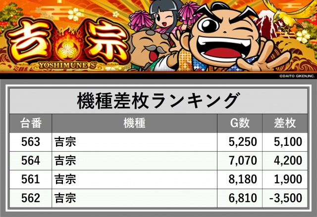 厳選された取材対象機種をはじめ、その他スロット全体から好記録が飛び出した!プレイヤーが楽しんだ1日を下記データにて振り返ってみて欲しい。