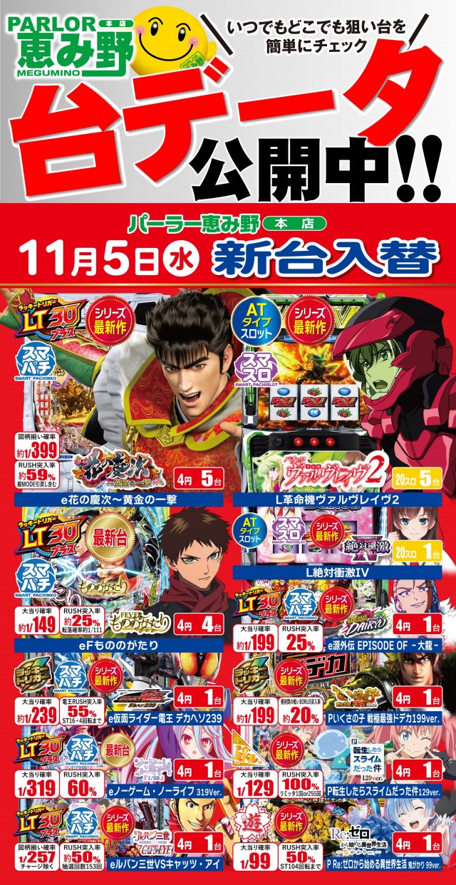 本日新台入替★最新台含む新台11機種導入予定★朝9時開店★