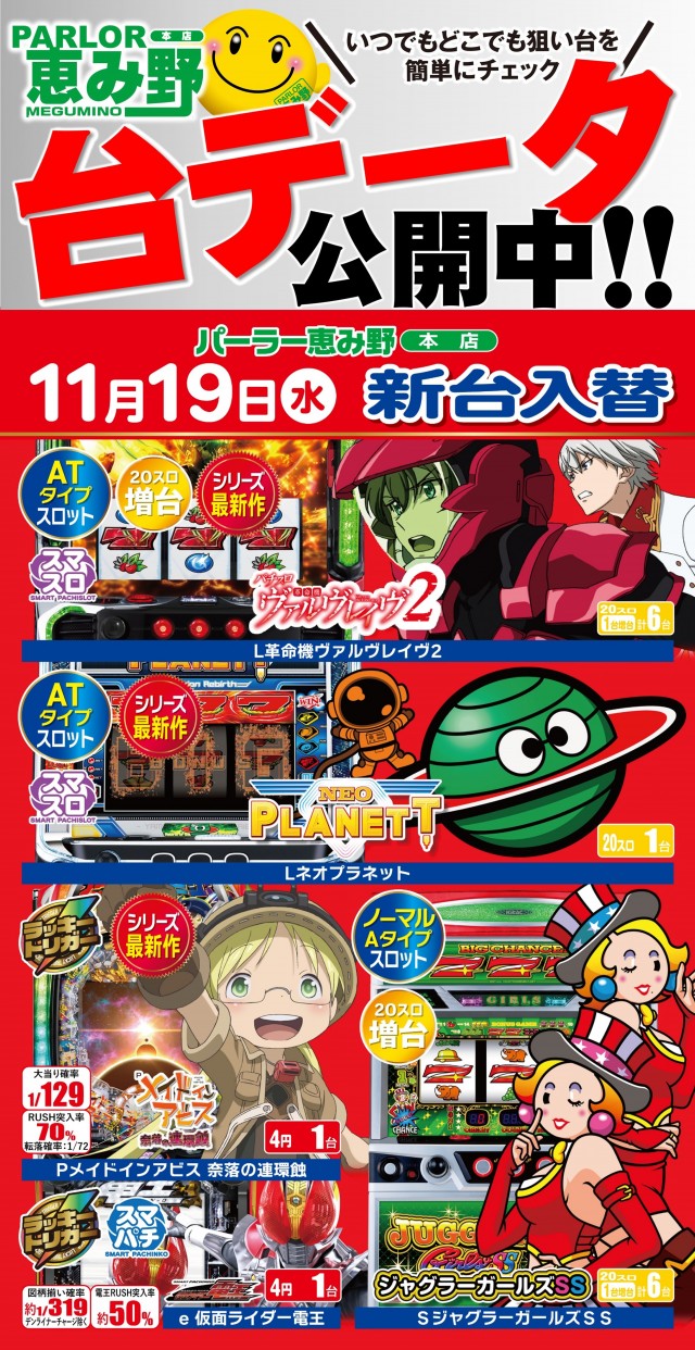 本日新台入替★新台5機種導入予定★朝9時開店★