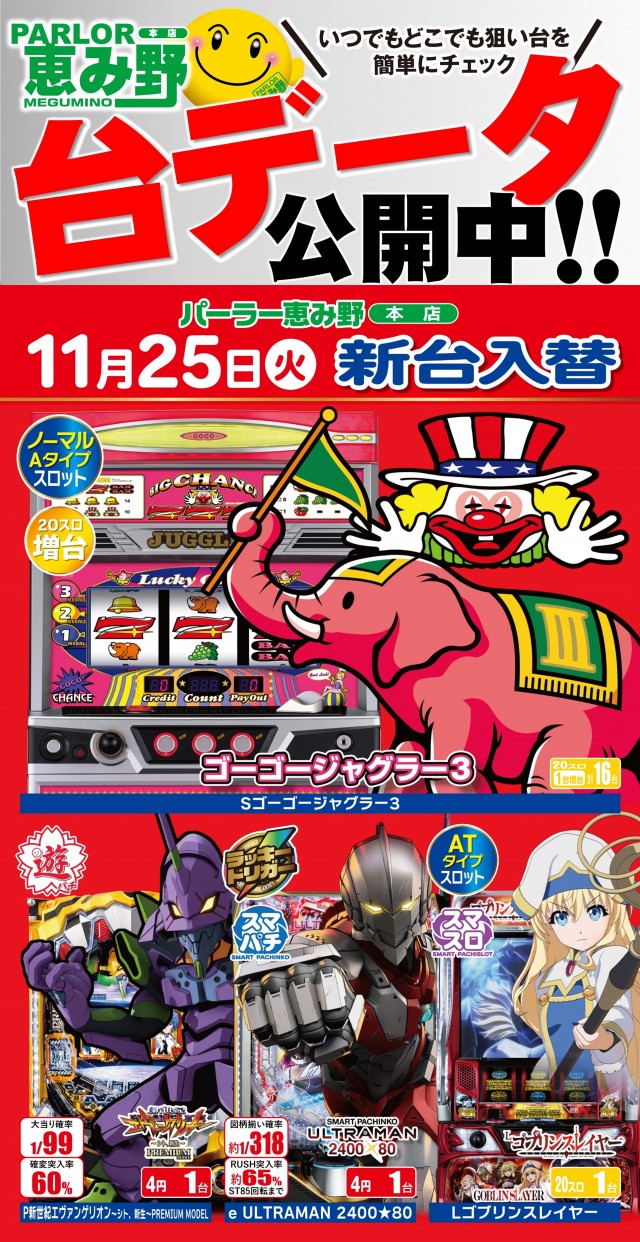 明日朝9時開店★今週の新台4機種導入済★台データ公開中♪