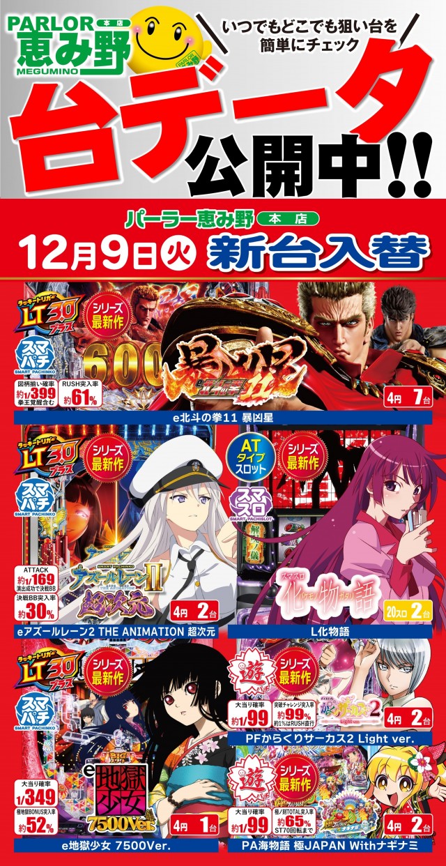 明日朝9時開店★深夜0時45分まで延長営業★台データ公開中♪
